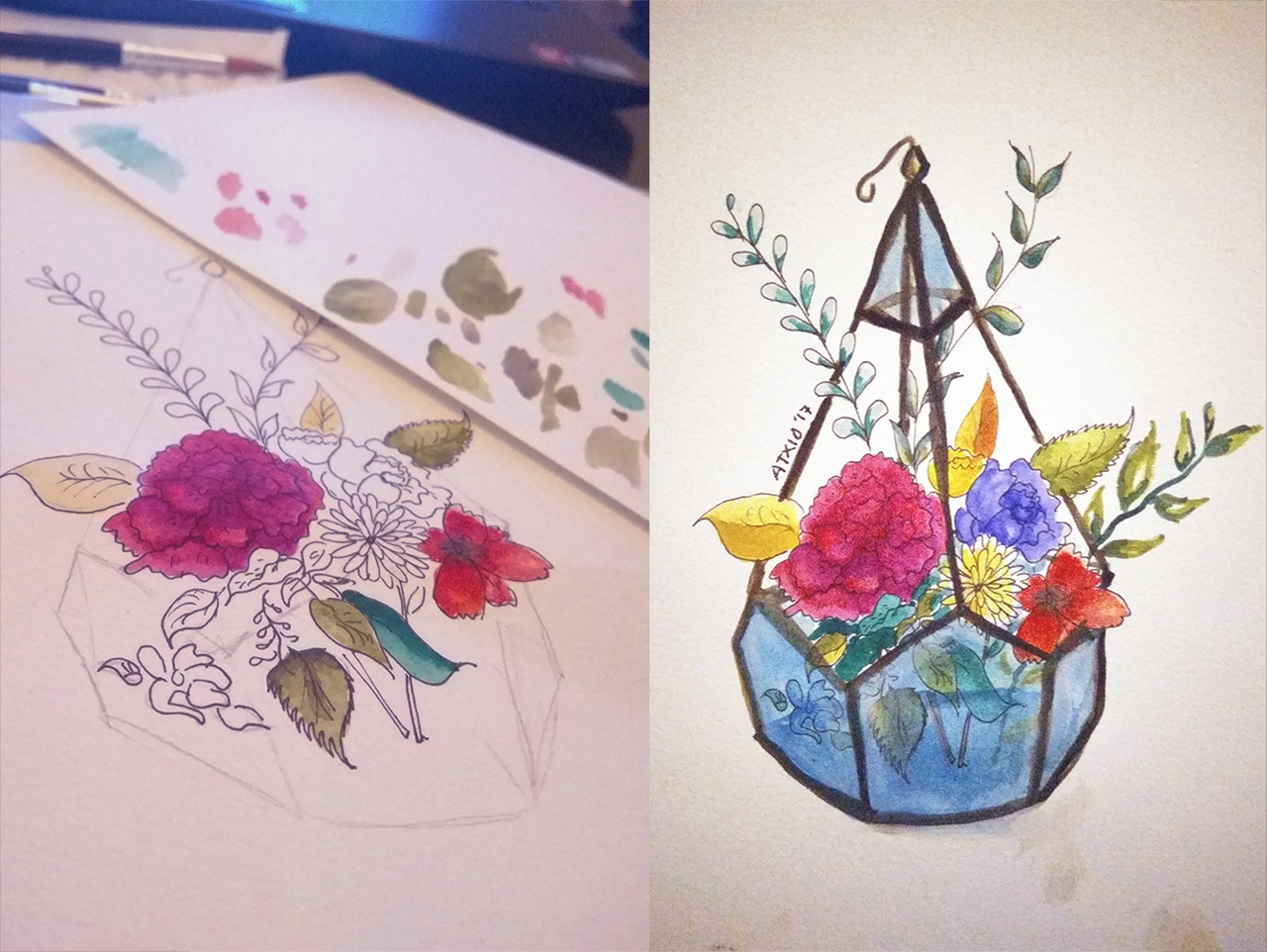 gambar kanan: Proses outlining. Gambar kiri: Final